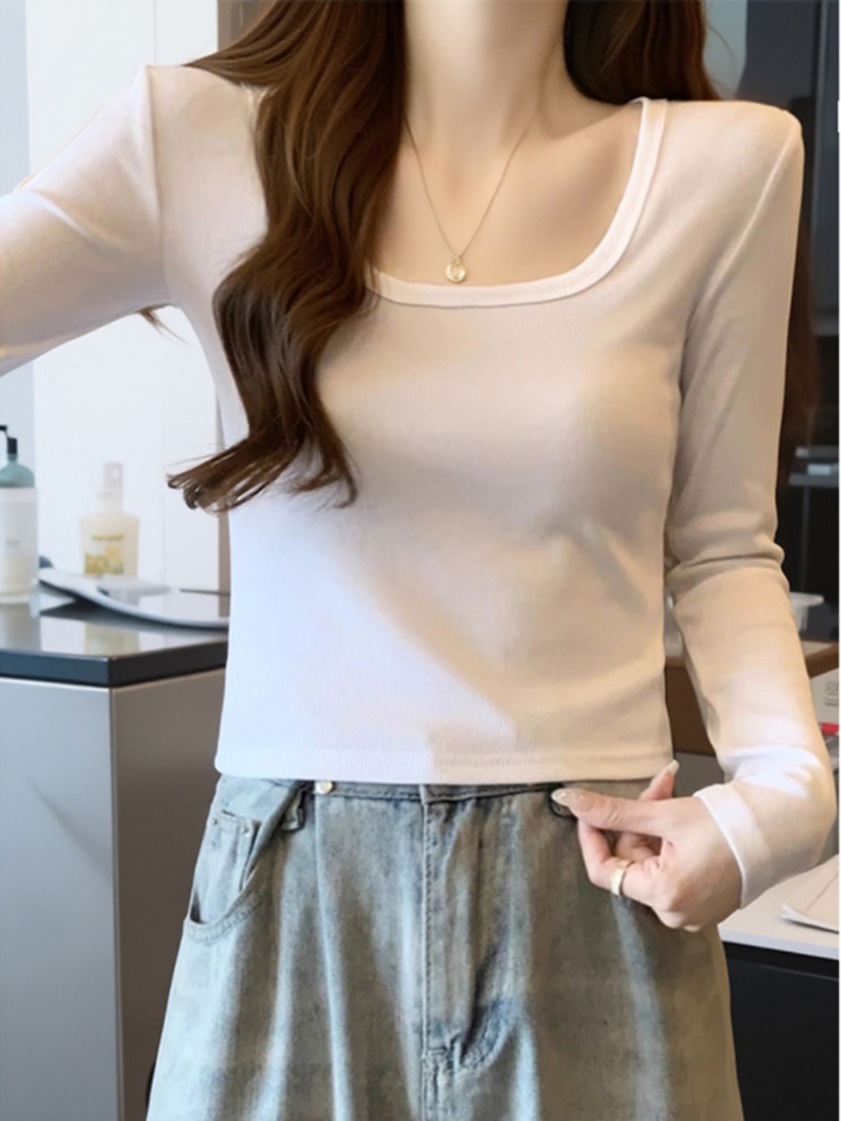 Collar: Square neck