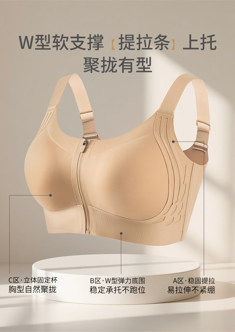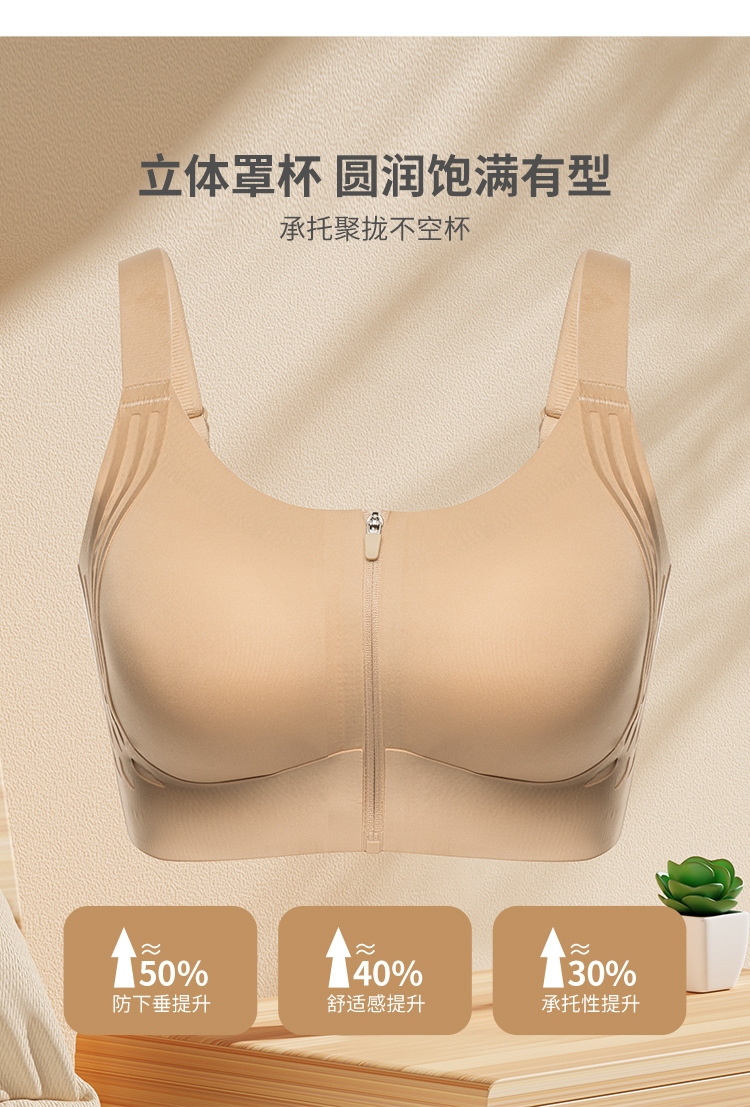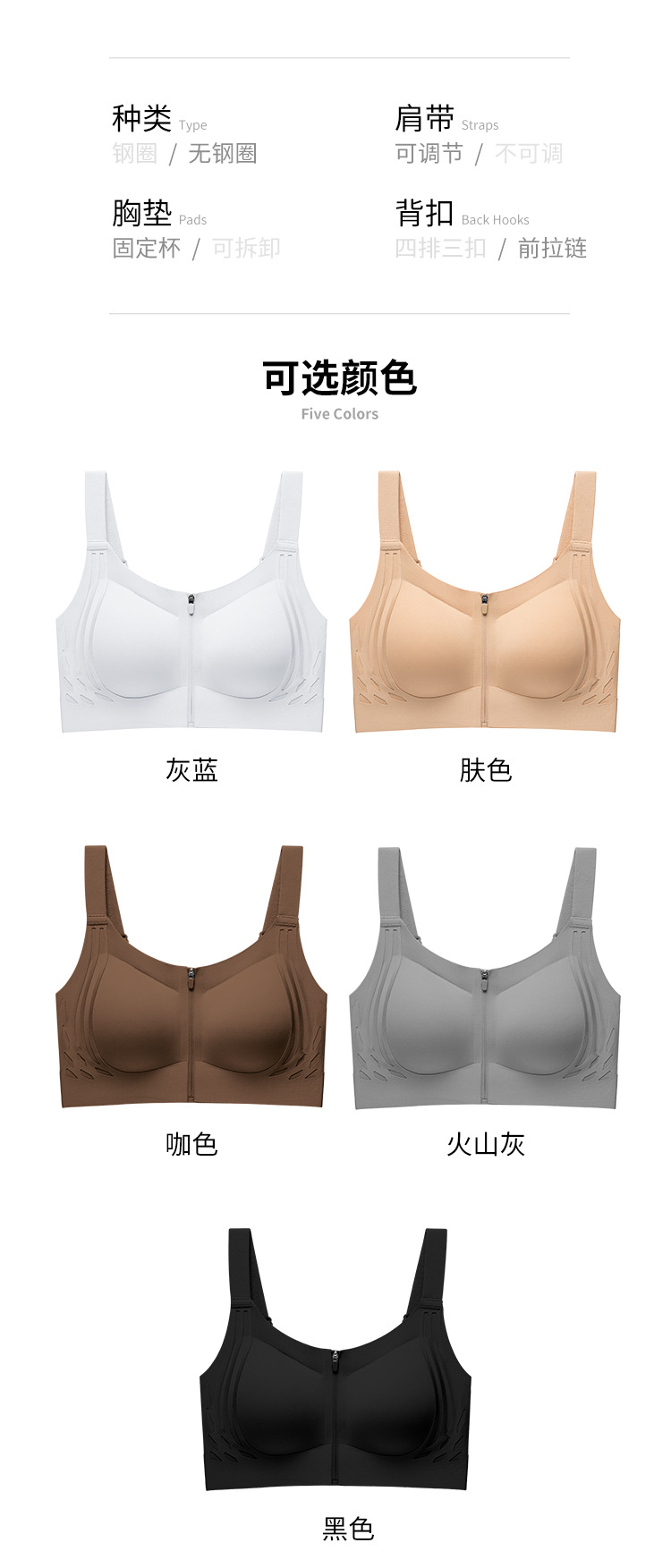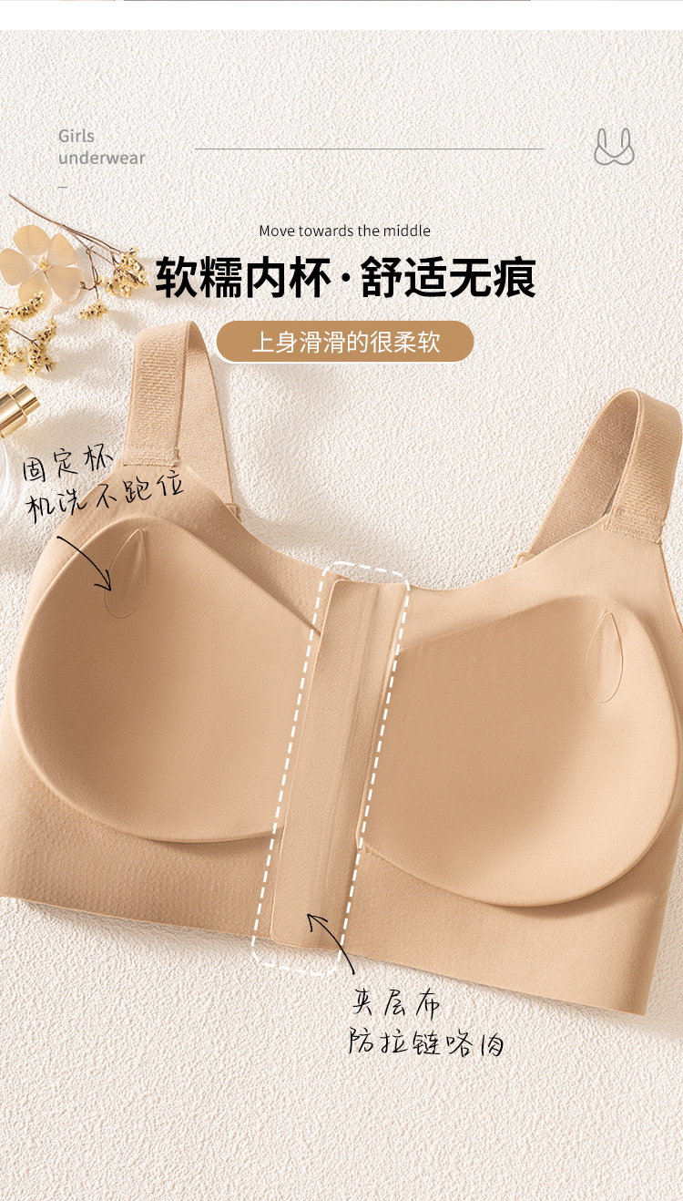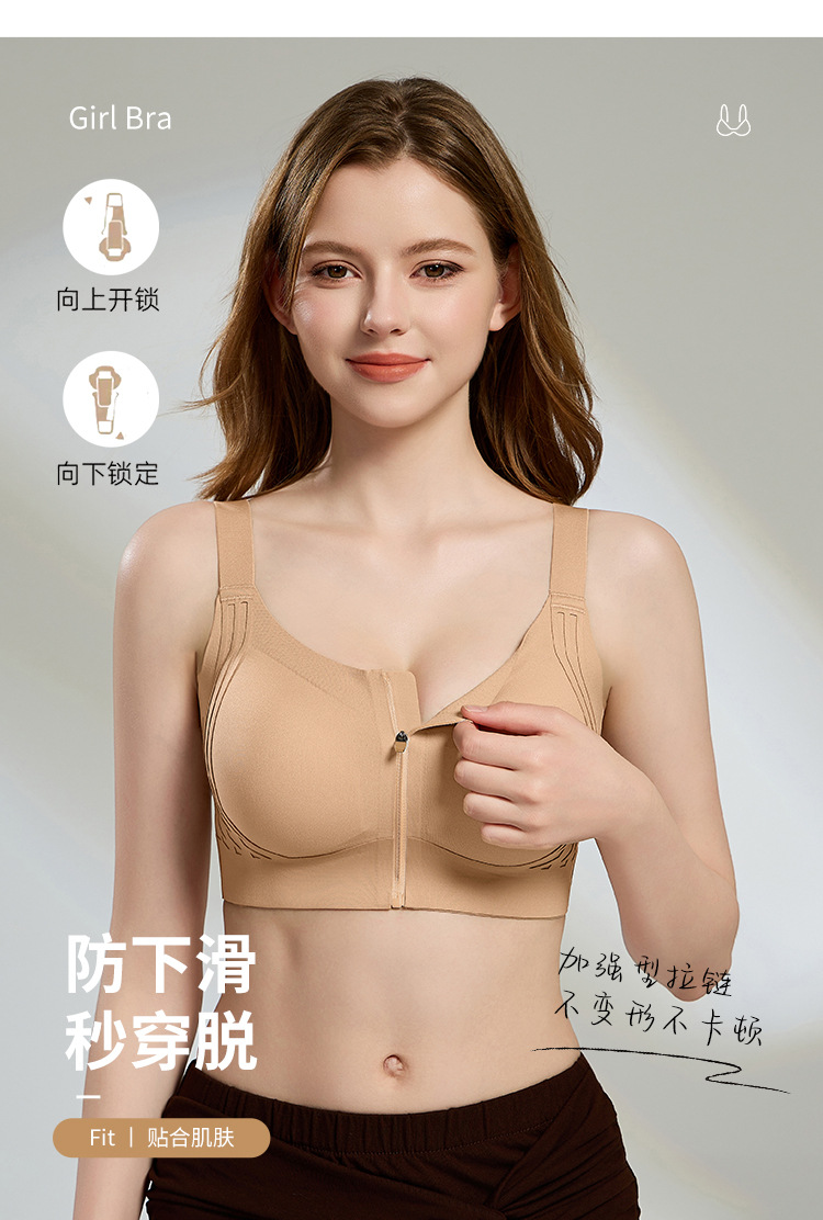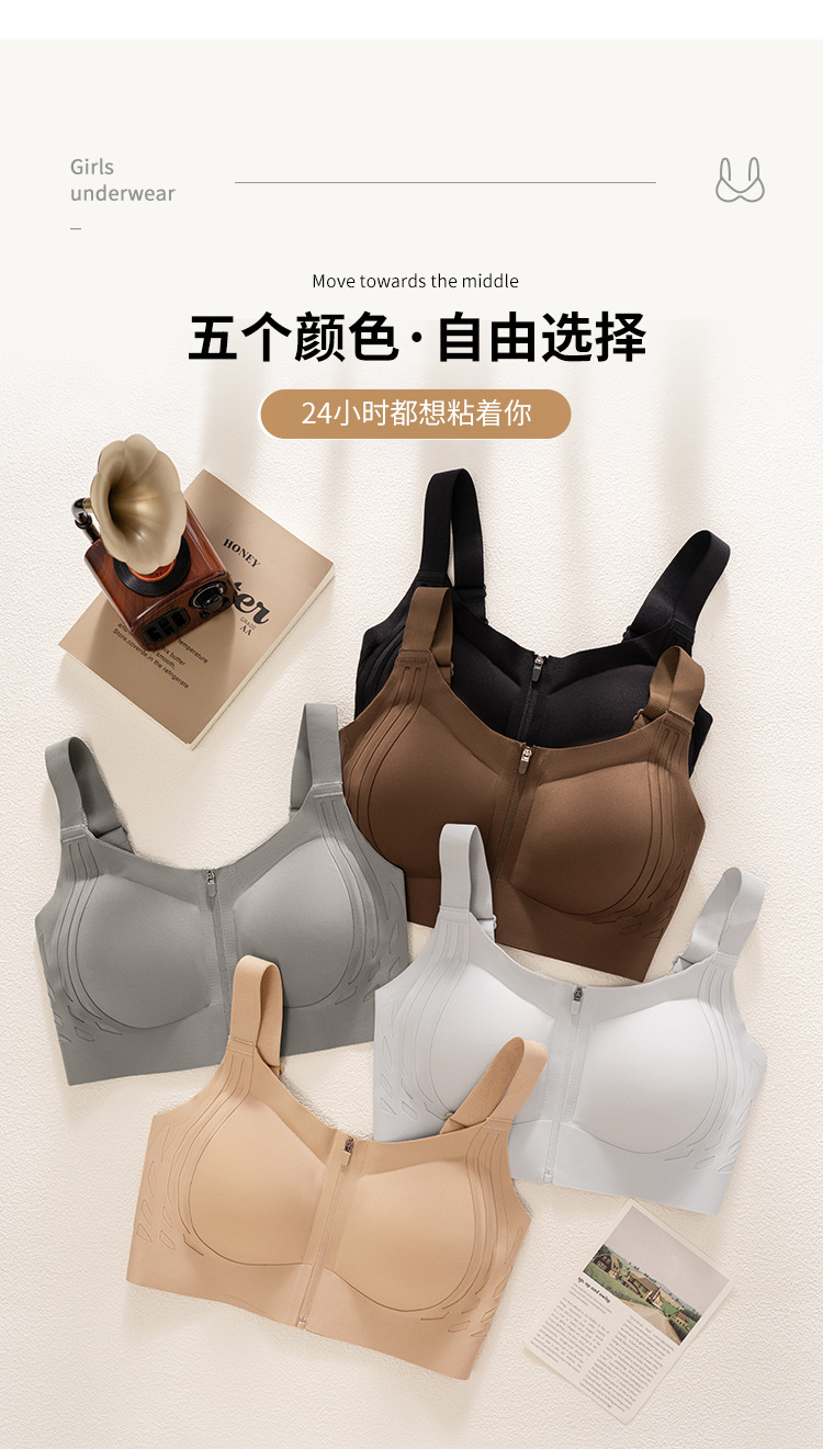 Front Zipper Sports Bra For Women, Shockproof, Wireless, Side Breast Collection, Anti-Sagging, Fixed Cup, Minimizer Bra For Large Busts