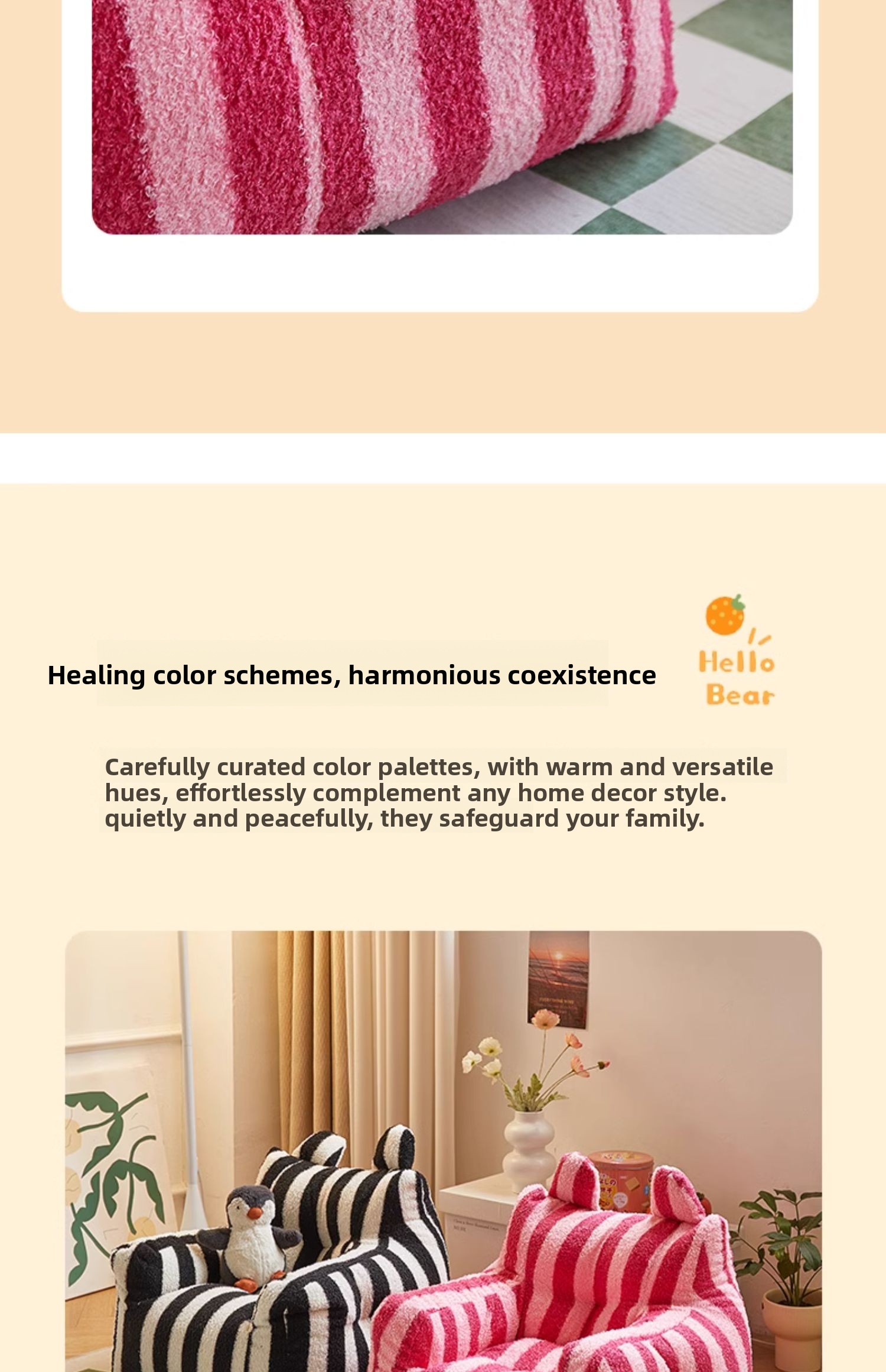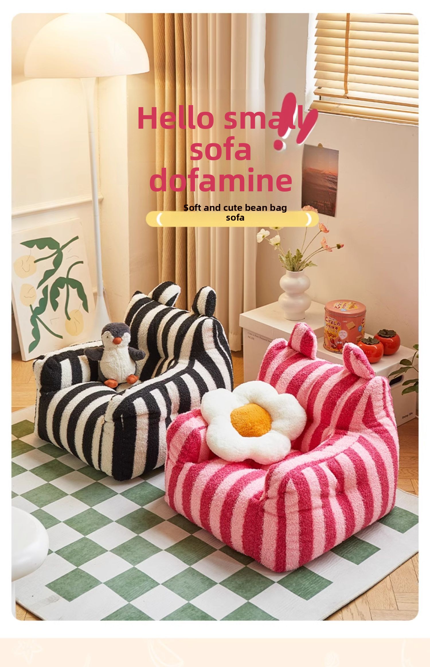 Color Options: Yellow, white, green, pink, brown, off-white, striped patterns (pink/black-white), and